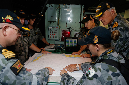 4月12日,澳大利亞海軍“珀斯”號軍艦上的工作人員在南印度洋搜索失聯客機。新華社發(澳大利亞國防部圖片)