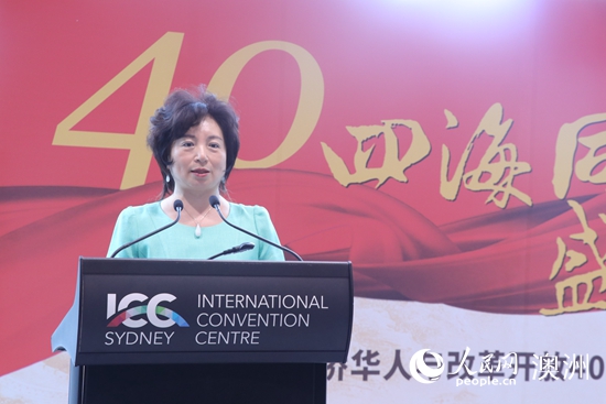 王芳表示,40年來中澳兩國超越國情和制作差異,不斷密切各領域交流合作,逐漸成為彼此發展進程中的重要伙伴。中國連續多年保持澳大利亞最大貿易伙伴、最大國際游客和留學生來源國地位。廣大海外僑胞是中國改革開放的重要見證者和貢獻者,也是中澳友好關系持續發展的重要參與者、促進者。希望旅居新州的廣大僑胞繼續積極投身到新一輪改革開放大潮中,助力中國全面開放,共同書寫中國與世界合作共贏的新篇章。