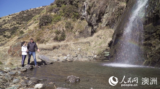Alpine Deer企業董事喬納森·沃利斯向記者介紹鹿場純凈的水質