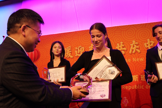 頒獎典禮現場,阮宗澤為四位單項獎獲得者及“最具中國人氣獎”獲得者頒獎,并對獲獎選手表示祝賀!白罹咧袊藲猹劇钡弥髦坏馁Z斯敏·佩蒂在接受人民網采訪時表示:“能夠得到參加這次大賽的機會我們三個已經非常開心了,能夠幸運地獲獎更讓我們深受激勵。我認為中澳兩國的友誼與關系對我們的未來非常重要!