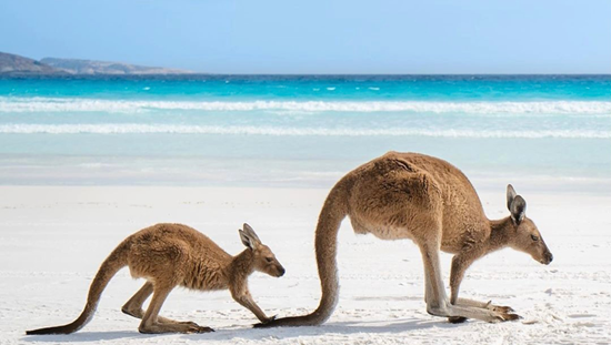 白色沙灘上的袋鼠(圖片來源于澳大利亞旅游局網站)