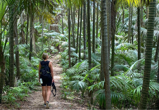 旅客在豪勛爵島的熱帶雨林里徒步(圖片來源于澳大利亞旅游局網站)
