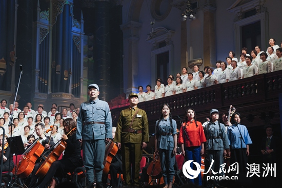 人民網悉尼8月10日電 “和平與未來”大型交響史詩音樂會暨二戰圖片展9日晚在悉尼市政廳舉行。本次活動由悉尼華星藝術團主辦,中國駐悉尼總領事館、澳大利亞海事工會、新南威爾士州南岸工會聯合協辦,吸引中澳各界人士2000多人觀看。