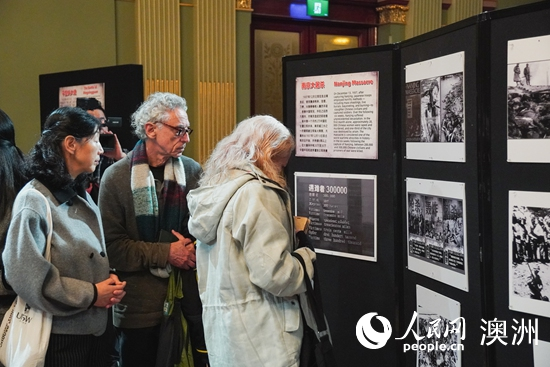 當晚,悉尼市政廳劇場大廳內還展出了二戰歷史圖片資料,包括南京大屠殺、達爾富拉姆事件等。這些圖片生動再現了八十年前世界各國人民共同抗擊法西斯的英勇場景,吸引觀眾駐足觀看。