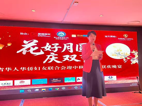 人民網悉尼9月27日電 在中秋佳節與新中國76周年華誕來臨之際,澳大利亞紐省(新南威爾士州)華人華僑婦女聯合會25日晚在悉尼舉辦十周年慶典暨中秋晚宴。百余位僑界代表歡聚一堂,共話團圓與發展。
